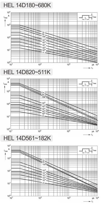 備注:上表KH超強(qiáng)型“電壓沖擊”40次僅適用于壓敏電壓430V及其以上規(guī)格的產(chǎn)品。