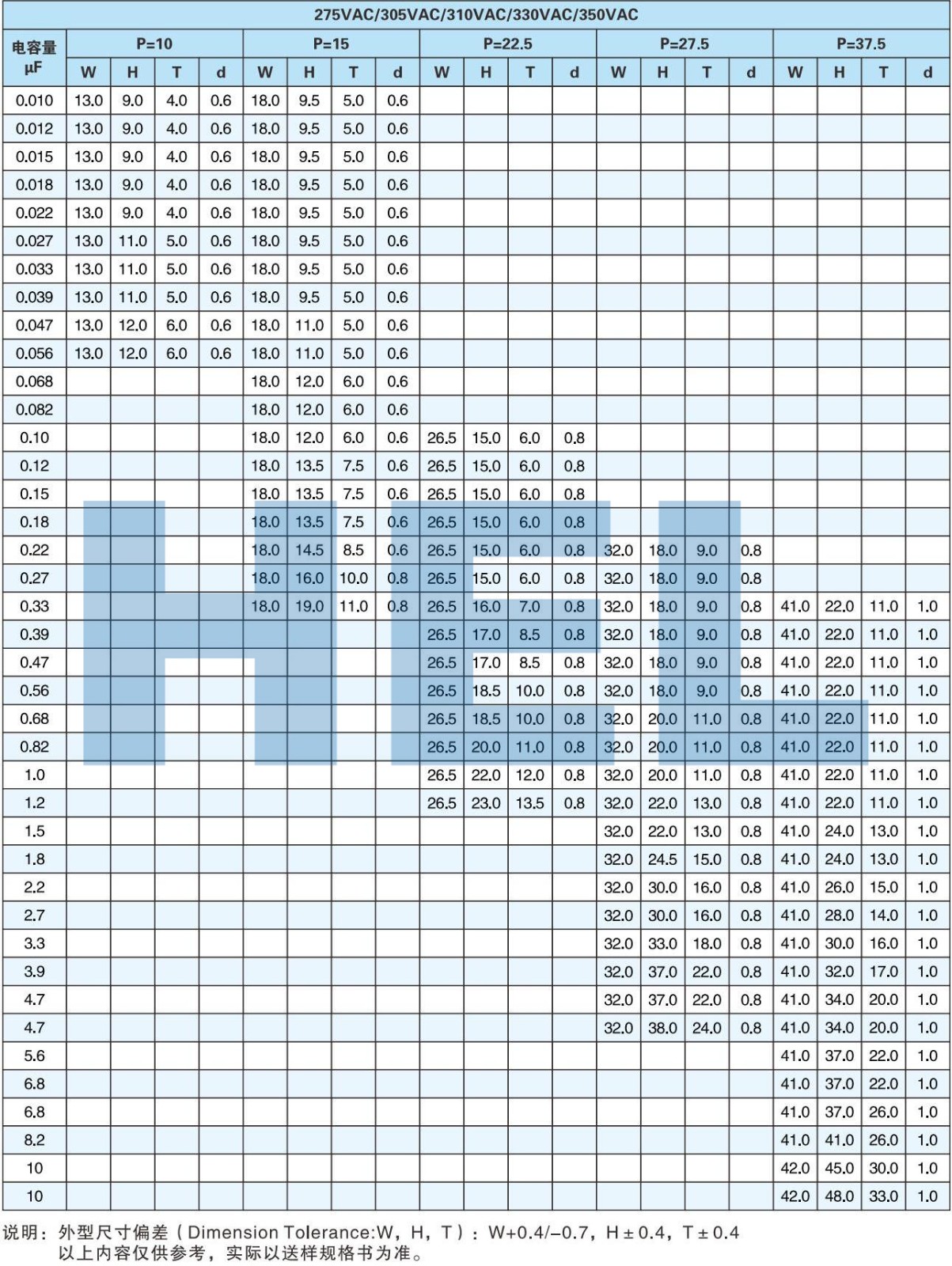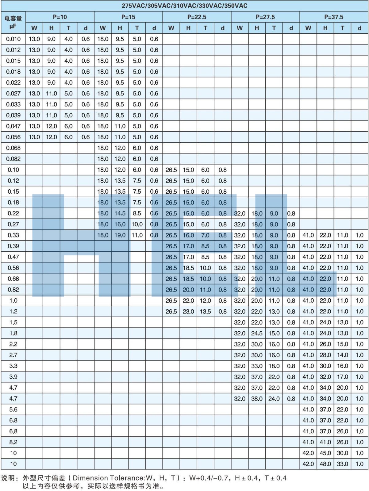 MPX 塑料外殼金屬化聚丙烯薄膜抗干擾電容器(X2)